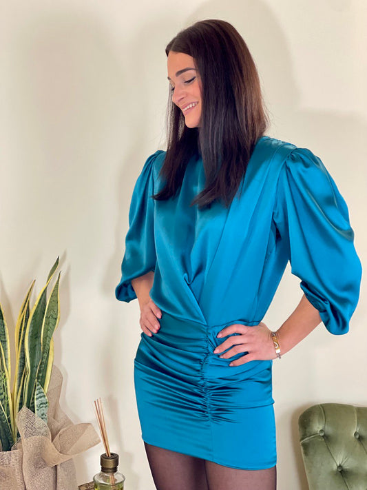 Silence Limited abito in raso colletto (disponibile pavone e fucsia)