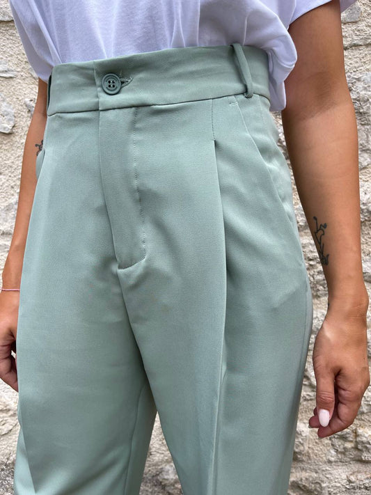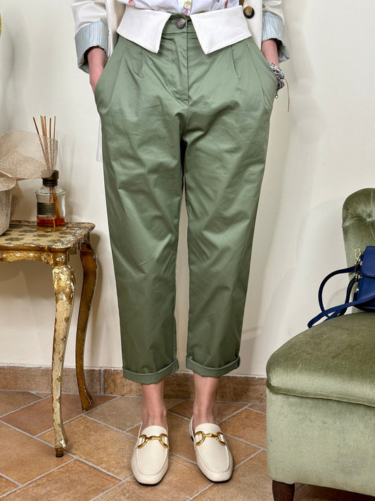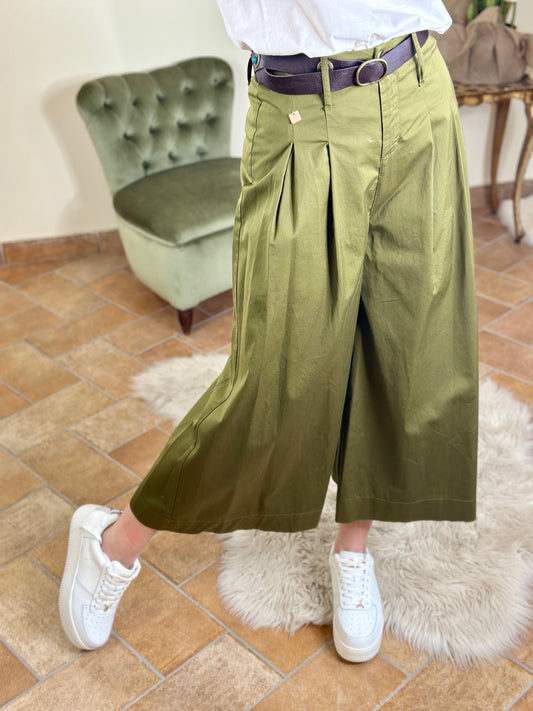 D'Elle pantalone con risvolto in vita (disponibile verde e cammello)