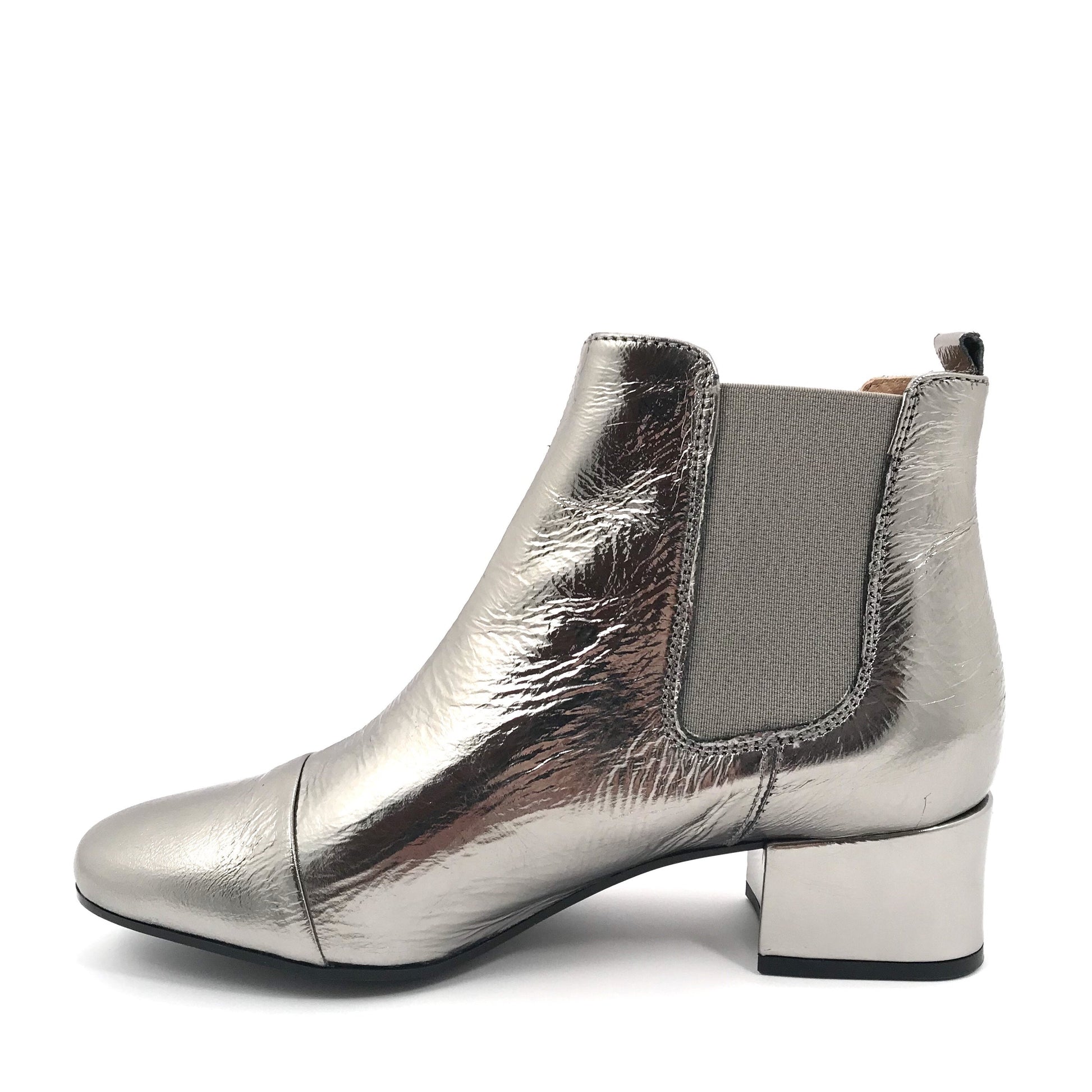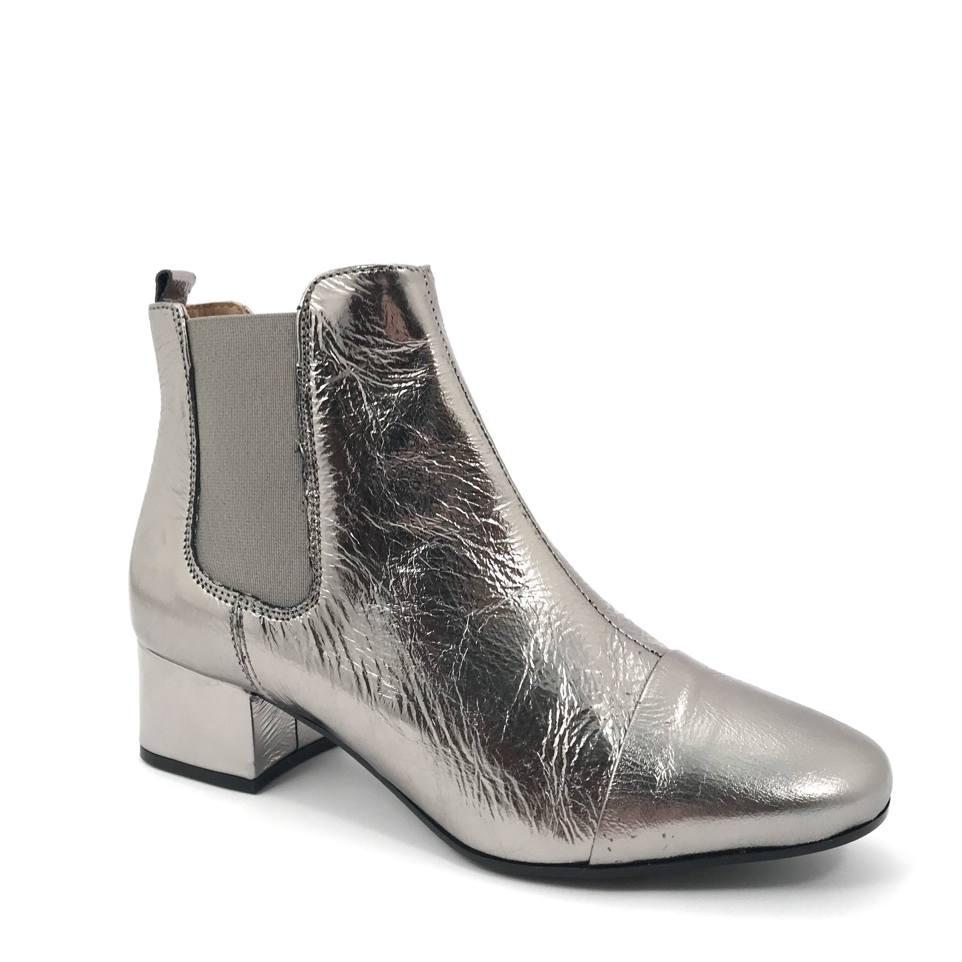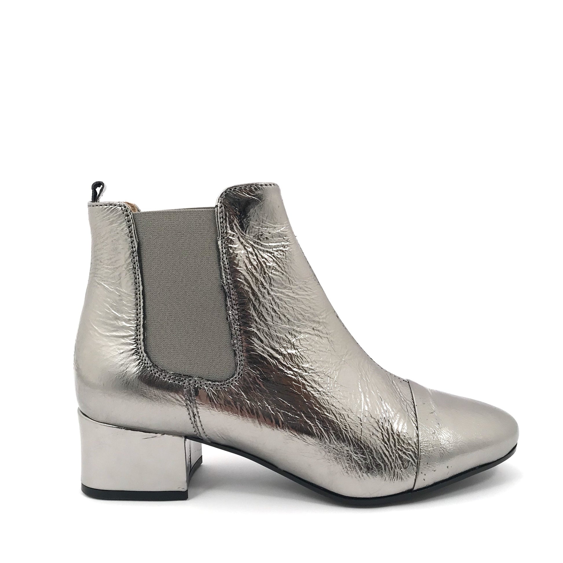 Stivaletto in pelle verniciata, con elastici laterali, tacco 4 cm, suola in gomma.