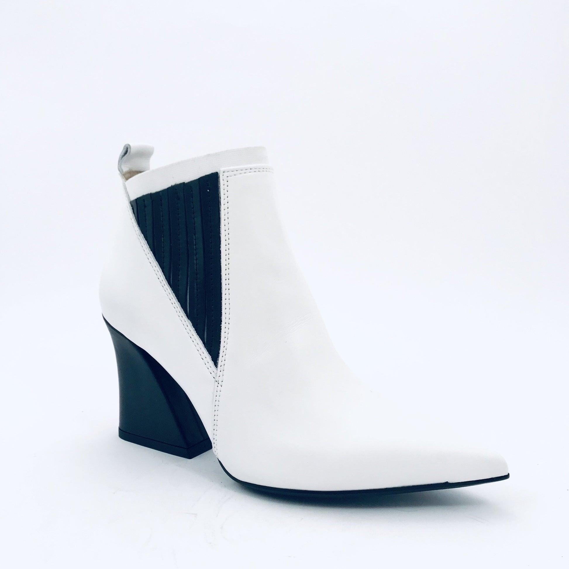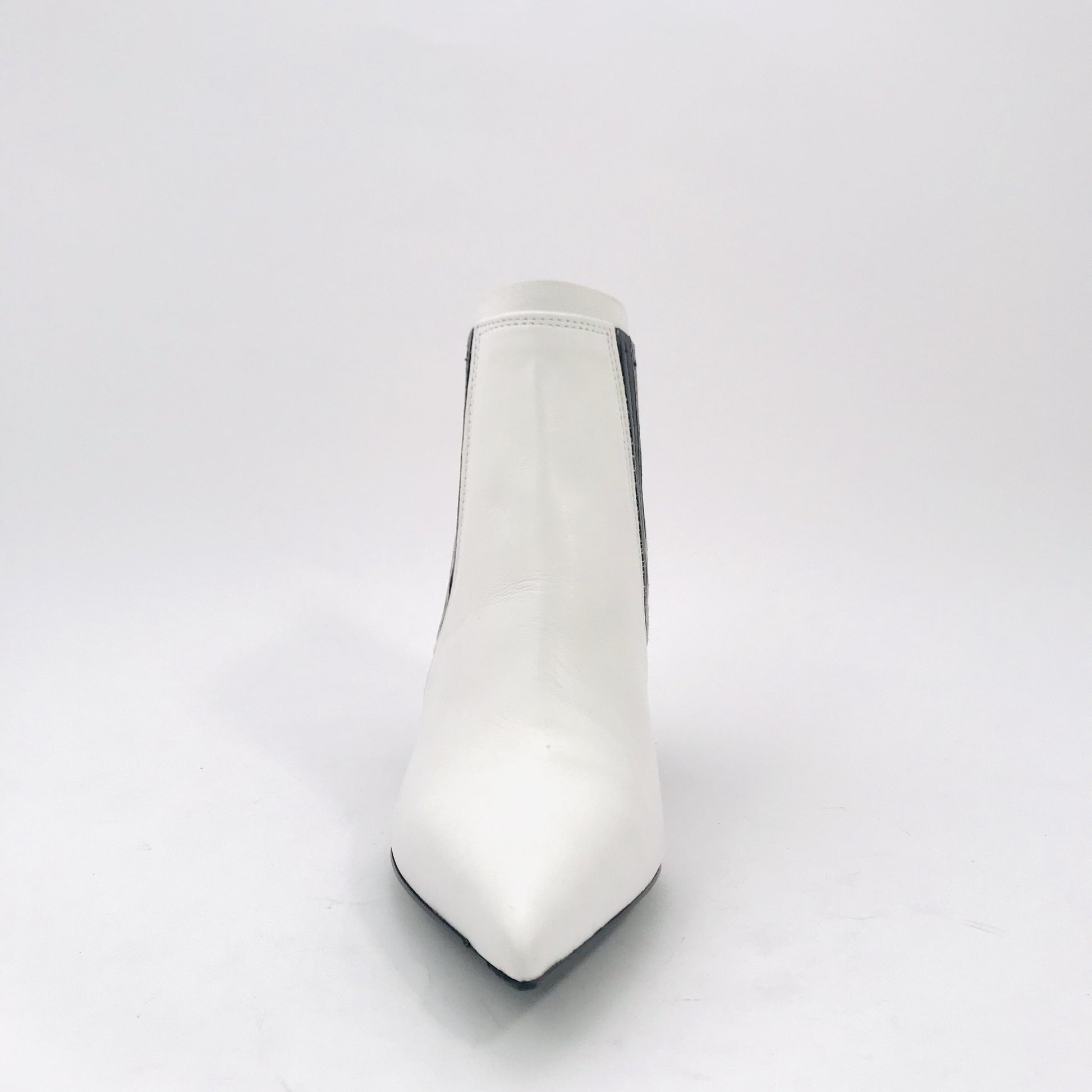 Tronchetto i pelle a punta con elastici laterali, tacco 90 mm, suola in gomma.